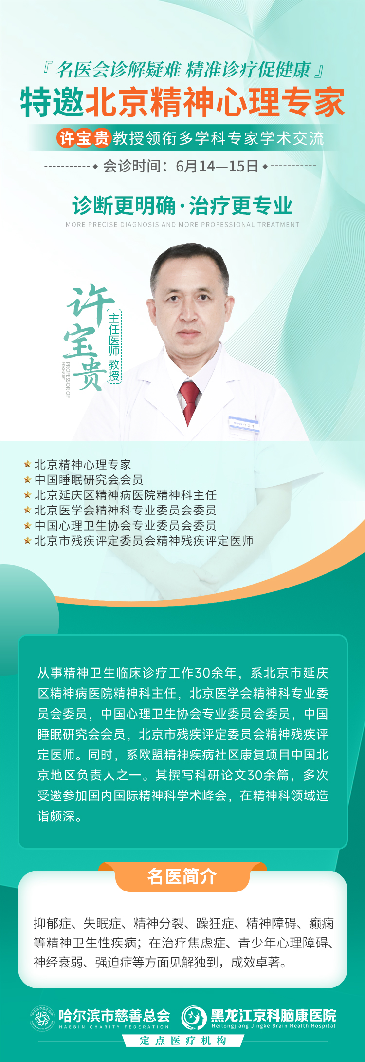 1.專家級別最高配置:能請到許寶貴主任這個級別的專家親自來聯(lián)合會診,機(jī)會難得!